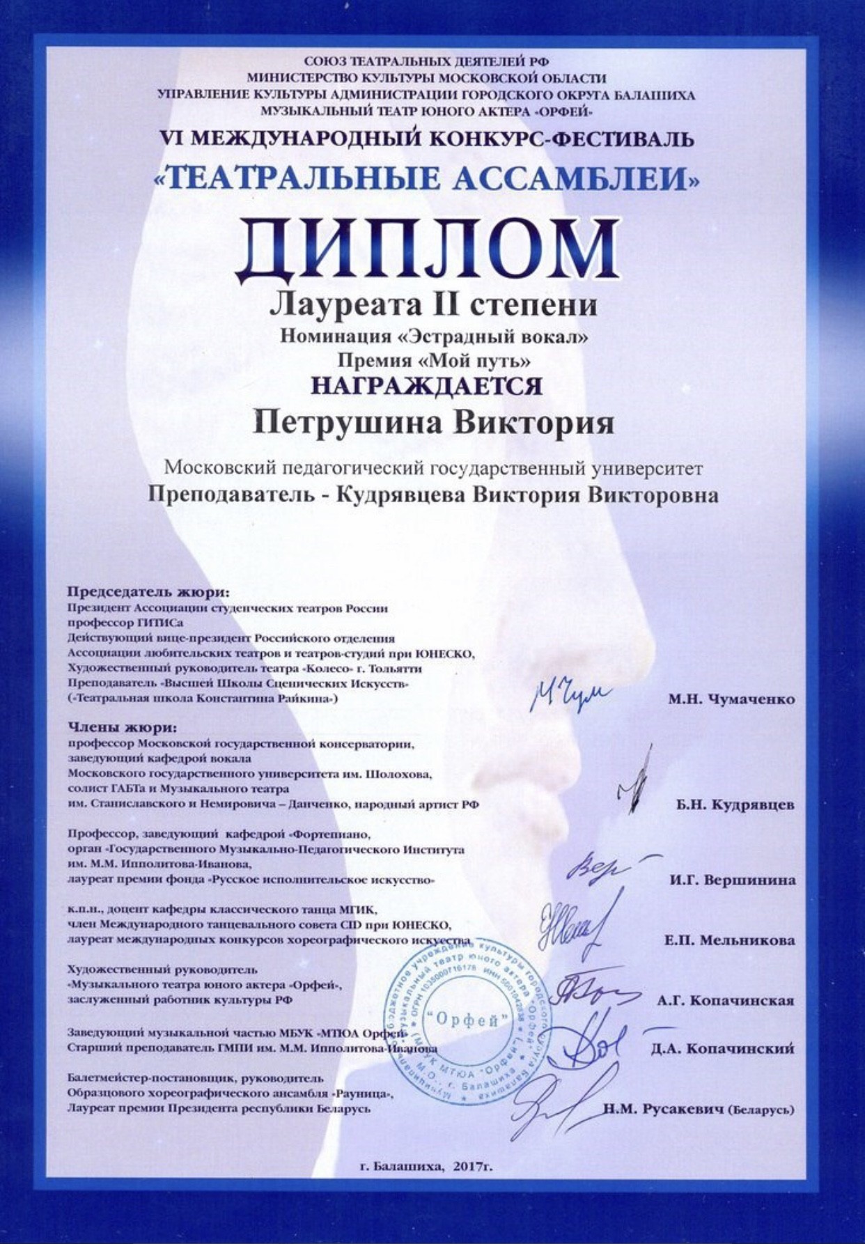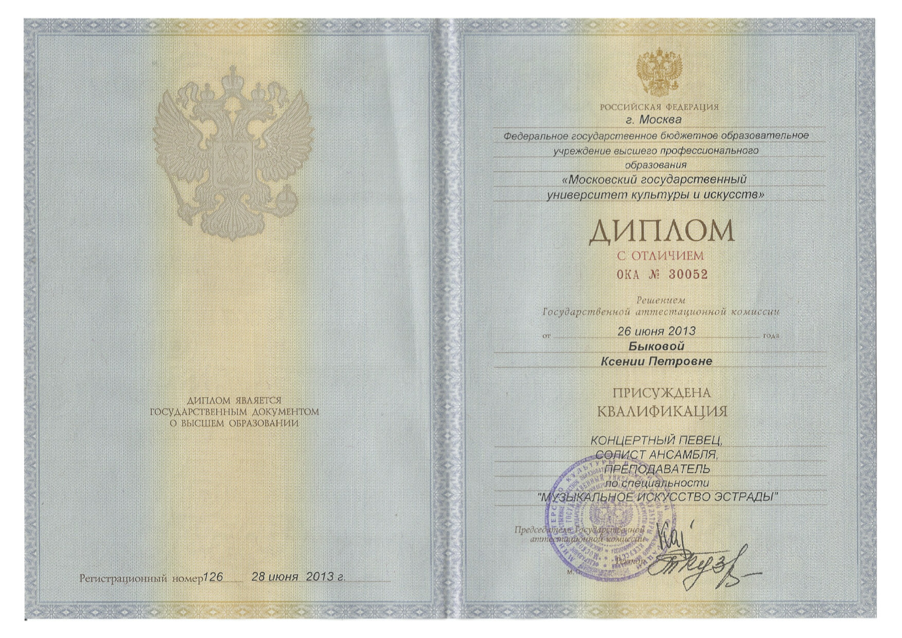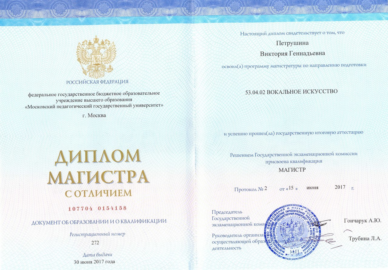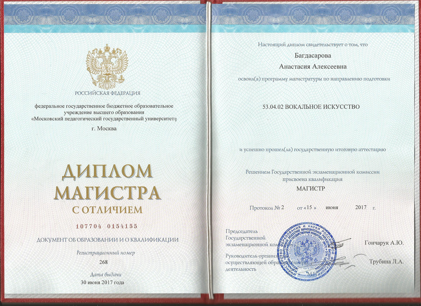 - В 2017 году я окончила магистратуру МПГУ по специальности «Вокальное искусство: академическое и эстрадное» с красным дипломом.
